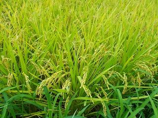穂を垂れた田んぼの上をトンボが数匹。