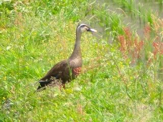 ミスターロンリー、カルガモ君は昼過ぎにやってきて、ささっと飛び立っていきました。