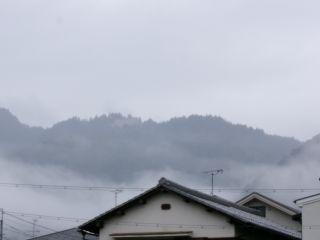山のふもとは雲がかかったようになって墨絵の世界。