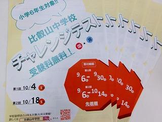夏の延長戦のような天気。 相変わらず日差しも強く、もわっとした暑さ。 お昼過ぎ、一雨来ました。 あっという間にやみましたけど。 その後、またまた晴れて気温も上がっていますか。 朝から日曜特訓。 比叡山中学校受験対策講座。 小学6年生、頑張ってくれていますよ♪ この夏休み、5、6年生の内容の復習とこの後習う6年生内容も学習して、中学入試に備えようというプログラム。 国語は入試によく出る「説明文」の文章読解のポイントを一つひとつ丁寧に。 算数は、5年生の「速さ」、「割合」など、文章題の解法をマスター。 また、6年生の予習内容、「円の面積」、「比例と反比例」、「角柱と円柱の体積」、「比」、「並べ方と組み合わせ」などへ。 夏の日曜特訓で中学入試に向けて、基礎基本から応用問題まで取り組みました。 そして、この9月から11月の「日曜特訓」は入試問題レベルの問題演習を繰り返して実力をつけていきます。 その後、12月、1月の直前対策の日曜特訓へ。 はりきってまいりましょう。 お知らせ♪ 先週末、比叡山中学校の先生が「チャレンジテスト」の案内を持ってこられました。 小学6年生対象のテストで、入試本番とほとんど同じ環境で受験できるので、予行演習になります。 テストの結果が「一隅入試」の加点対象となる場合があるので、まさに、チャレンジするのがいいですね。 受付期間が決まっていて、先着順なので、早めの申込がいいでしょう。