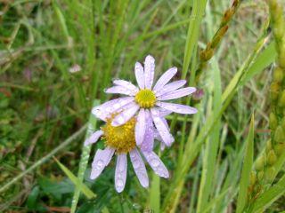 野菊にはシジミチョウの代わりに大きな雨粒。