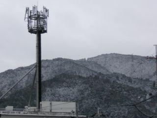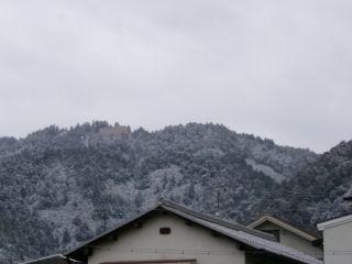 夜中、冷え込んでいるかなあ、と思っていたら、今朝は山のほうが雪景色。