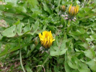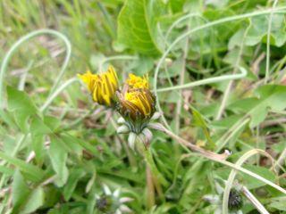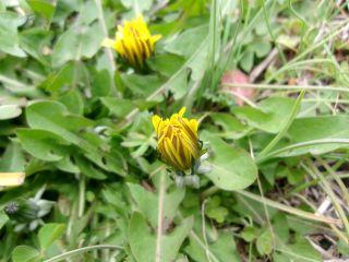 足元の春、雨だからお休みですか、タンポポたち。