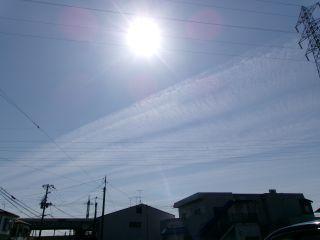 青空にお日様と飛行機雲。
